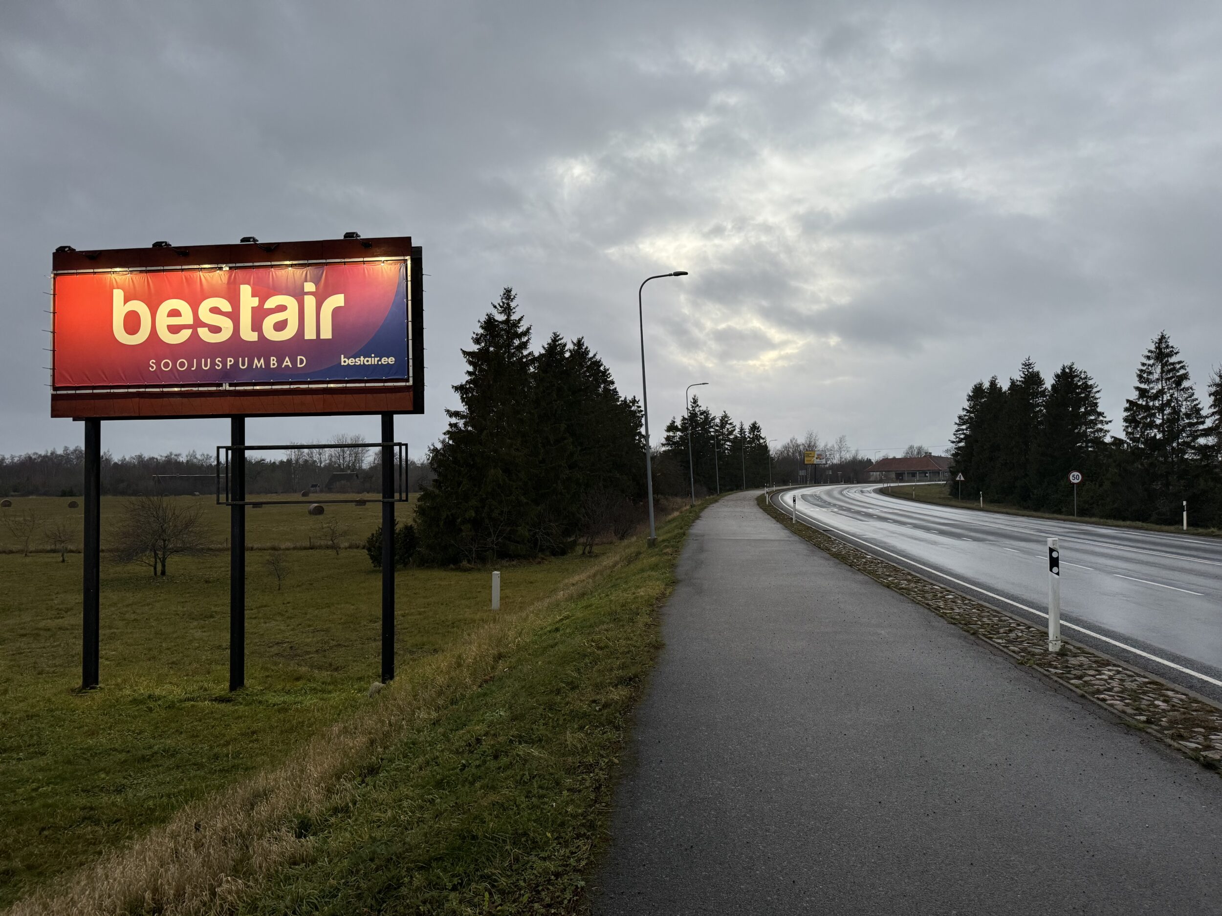 Maantee ääres, valgustatud